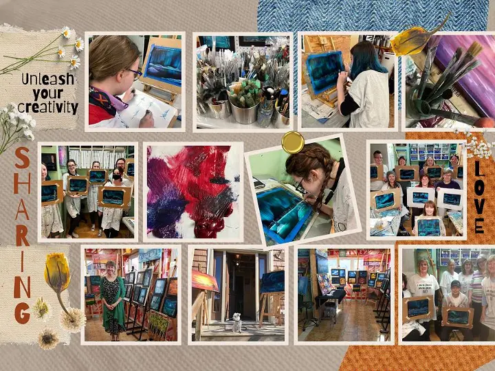 My art studio has the capacity to welcome up to 8 individuals at a time, ensuring an intimate and focused creative atmosphere. Each art piece will require 2 to 3 sessions to complete, allowing for the participation of various groups.
