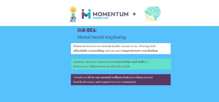 Momentum Counselling now includes the Mental Health Co-Pilots (MHC) as an additional new program to support clients. MHC is a wayfinding service that uses an intersectional lens to help Albertans navigate the mental healthcare system, connecting clients to mental health supports tailored to their unique needs, values, and budget. MHC supports clients who require mental healthcare beyond the scope of Momentum’s solution-focused modality, ensuring that no one gets left behind. Some examples include supports for substance use, domestic violence, 2SLGBTQIA+, complex trauma, and culturally-informed and representative service providers.