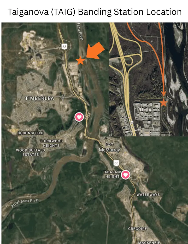 WBWRI is seeking Field Law’s support in the form of a grant that contributes to 2026 operations ofTaiganova Bird Banding Program—acommunity-accessible bird monitoring station that runs from August 11 to the end of September, in Fort McMurray. This program offers a unique opportunity for residents, youth, and Indigenous community members to participate directly in monitoring migratory birds.