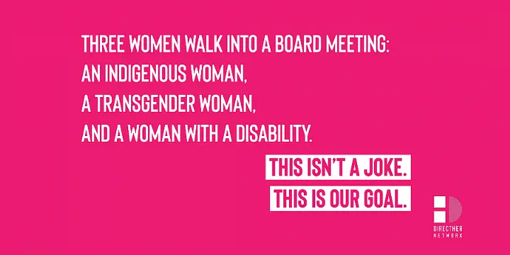 DirectHer intends to target young women in Alberta who are interested but not yet serving on boards, with a specific focus on those who: 1) are between the ages of 25 and 45; and/or 2) identify with a racial and/or ethnic minority group; and/or 3) consider themselves to be a person with a disability; (collectively, the “Audience”).