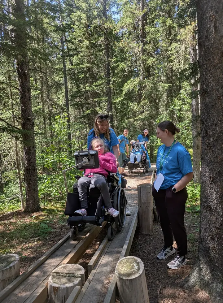 Over one weekend, campers participate in activities designed for connection—team games, nature hikes, creative projects, and peer mentorship. Input from peer mentors in the planning phase centres the voices of the people the camp is for and ensures that activities are motivating. Support persons learn alongside campers, gaining hands-on training to better facilitate AAC use in everyday life. Graduate students in the University of Alberta’s speech-language pathology (SLP), occupational therapy (OT), and physical therapy (PT) programs, supported by experienced volunteer community professionals, serve as counselors and activity leaders, gaining intensive hands-on interprofessional experience with AAC.