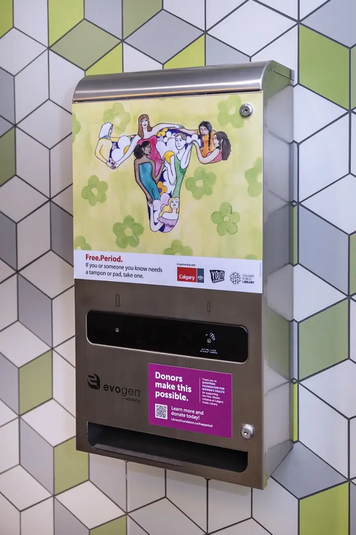 Every day, thousands of Calgarians visit their Calgary Public Library not only to learn, connect, and grow—but also to feel safe, welcomed, and supported. For many, this includes access to something essential, yet often overlooked: free menstrual products. Since 2021, Calgary Public Library has proudly offered Free. Period., a barrier-free service that provides pads and tampons in 21 Library locations. This program is simple, effective, and transformative: a small act of accessibility with an outsized impact on health, dignity, and equity.