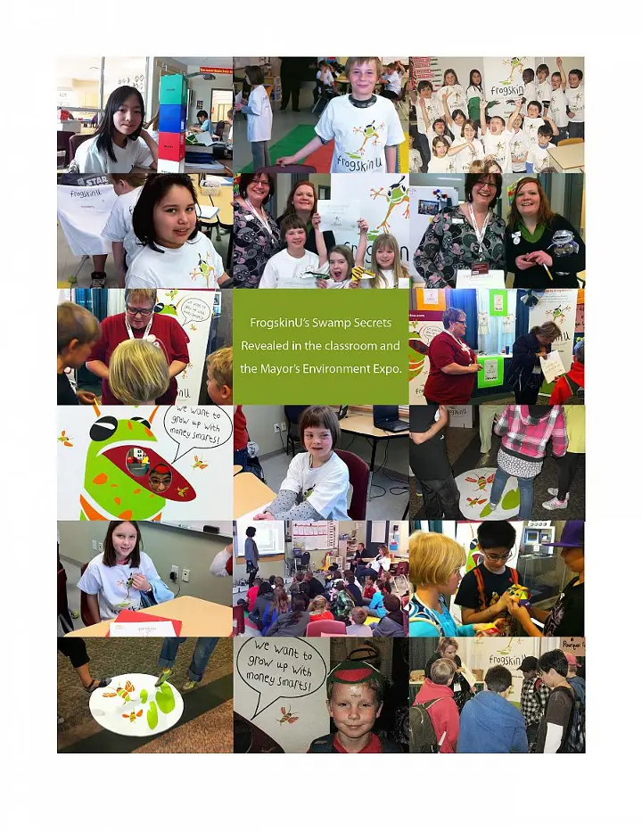 Since January 2010, FrogskinU has visited 80 classrooms; helping 9,500 students in grades 4, 5 and 6 understand essential money skills. Test results to date show students’ knowledge rose from 3% correct answers to 78% correct answers in five lessons.