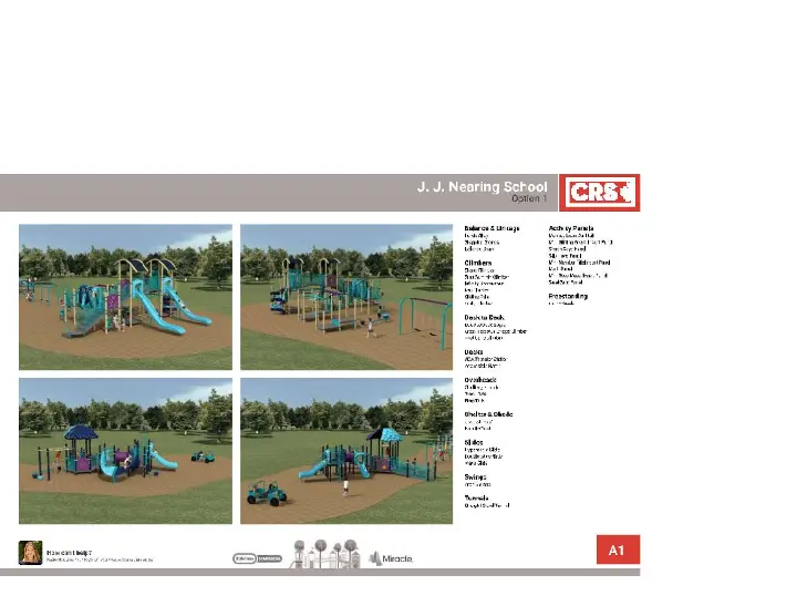 This project will replace the JJ Nearing Catholic Elementary School Playground in the St. Albert community of Dear Ridge. The JJ Nearing Playground Committee is working hard to secure the $350,000 needed to complete the project and has collaborated with the City of St Albert in extensively in the process. The committee recently issued a formal Request for Quotation package to seven (7) companies specializing in the manufacturing and installation of playground equipment. We received budgetary costs and design proposals from six (6) of the companies contacted and short-listed the proposals down to the three (3) design concepts that are attached.
