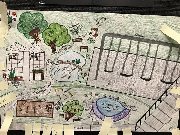 The North Haven Learning Grounds is a schoolyard naturalization project located at the heart of our community at North Haven School. The project originated with school staff, but has been shaped by students (Grades K to 6). Visioning for the project had students consider “what kind of world do you want?” Students have actively participated in planning the North Haven Learning Grounds, making observations of the school grounds, creating project designs, performing civic engagement through presentations and voting, and applying mathematical knowledge to budget aspects of the project. Students also used resources from the Kainai First Nation to learn about plant species adapted to local conditions. Student consultation will continue with project design.