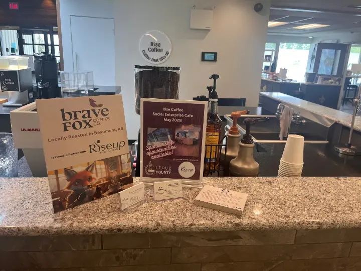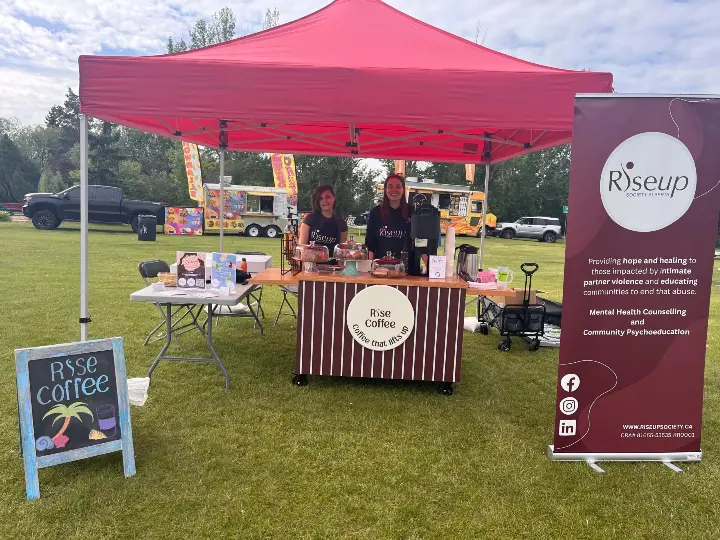 This summer, Riseup Society launched our ongoing fundraiser/social enterprise- Rise Coffee. Rise Coffee has a physical café in Nisku located within the Business and Entrepreneur Centre as well as a coffee cart which can be taken to public events. All funds from Rise Coffee sales return to Riseup Society Alberta to fund free counselling sessions.