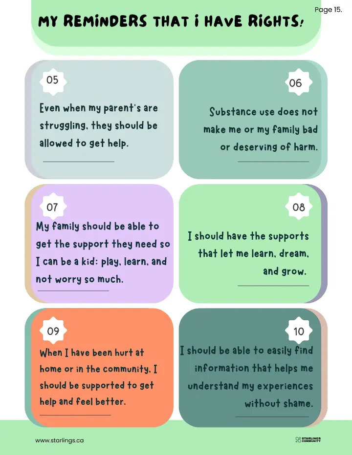 IN this program, youth meet bi-weekly in safe, peer-led spaces where they learn about Children's Rights made relevant to their experiences with the stress and stigma of a parent's substance use, how policies and systems affect them through a peer community, gain tools to share their stories, and connect with supportive mentors and leaders in the community. The program culminates in advocacy initiatives chosen by the youth themselves, such as awareness campaigns, presentations to decision-makers, or creating youth-friendly resources. In doing so, they not only heal from stigma but also change the community around them.