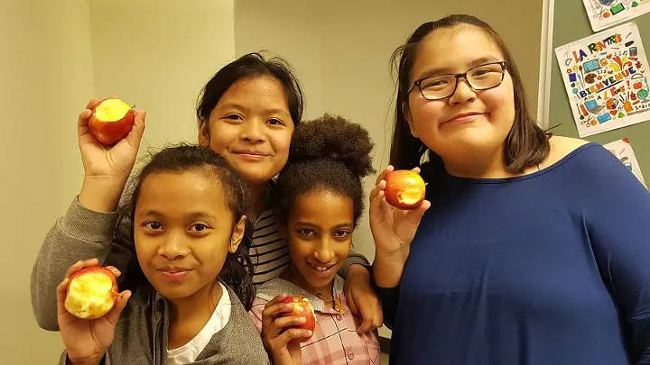 This past school year, students made apple tarts, learned about how apples grow, read books about apples...the list goes on! One school even held their Great Big Crunch event at the community soup kitchen, inviting students and their parents to paint apples, learn about the different parts and varieties of apples, and eat apple pie!